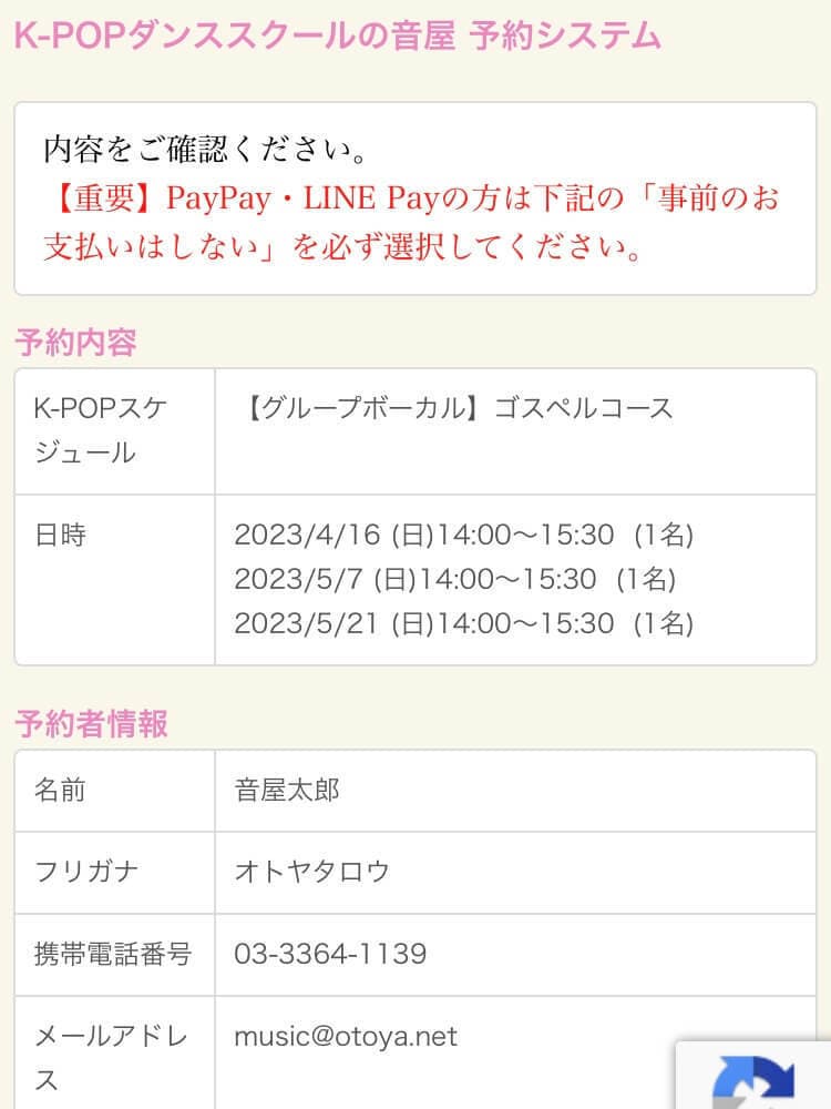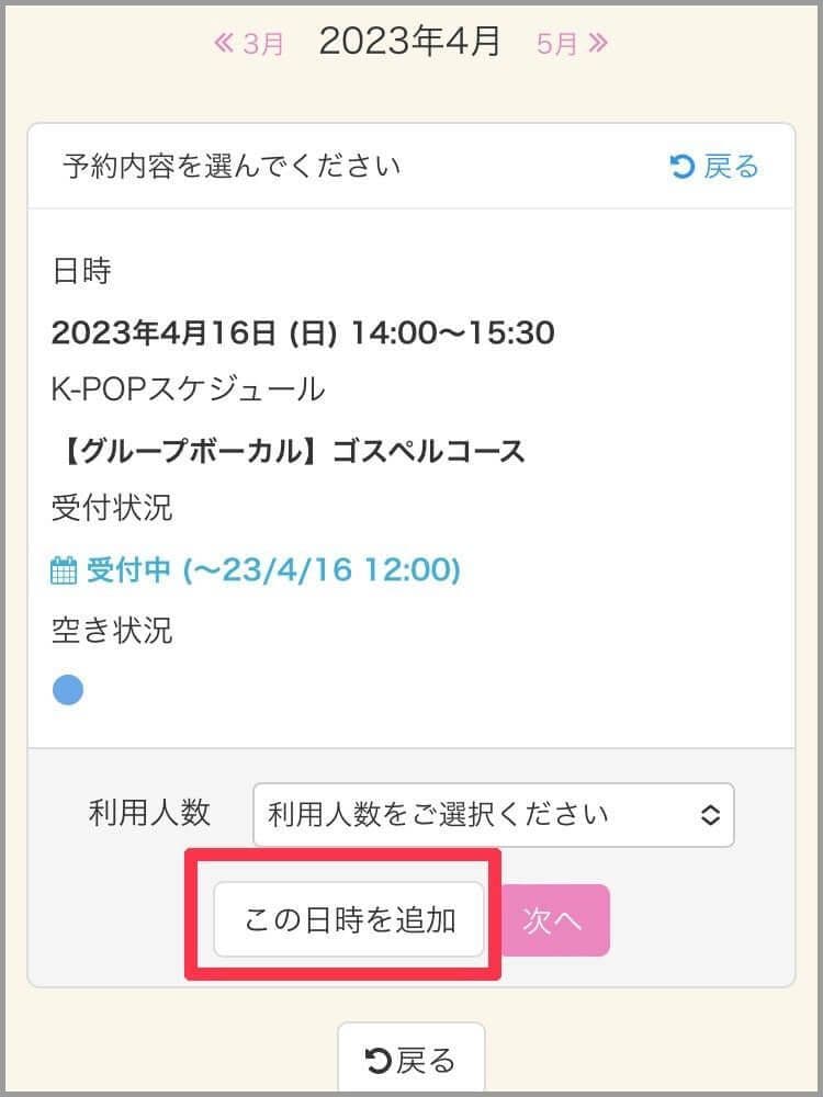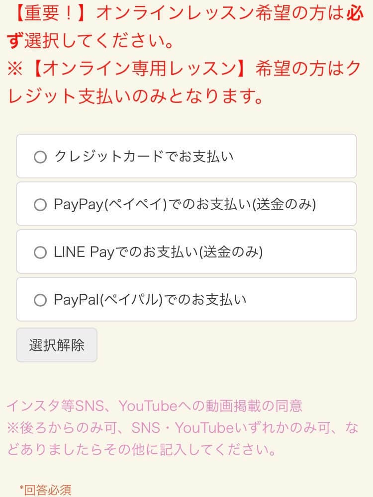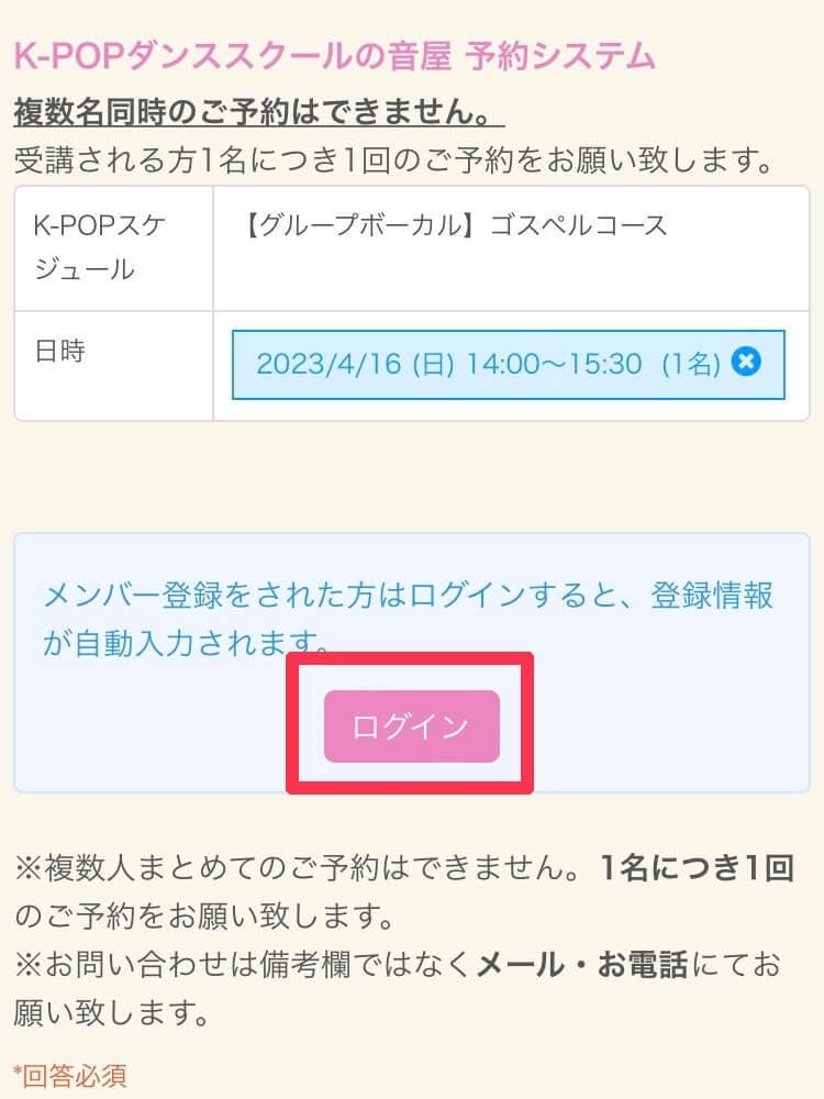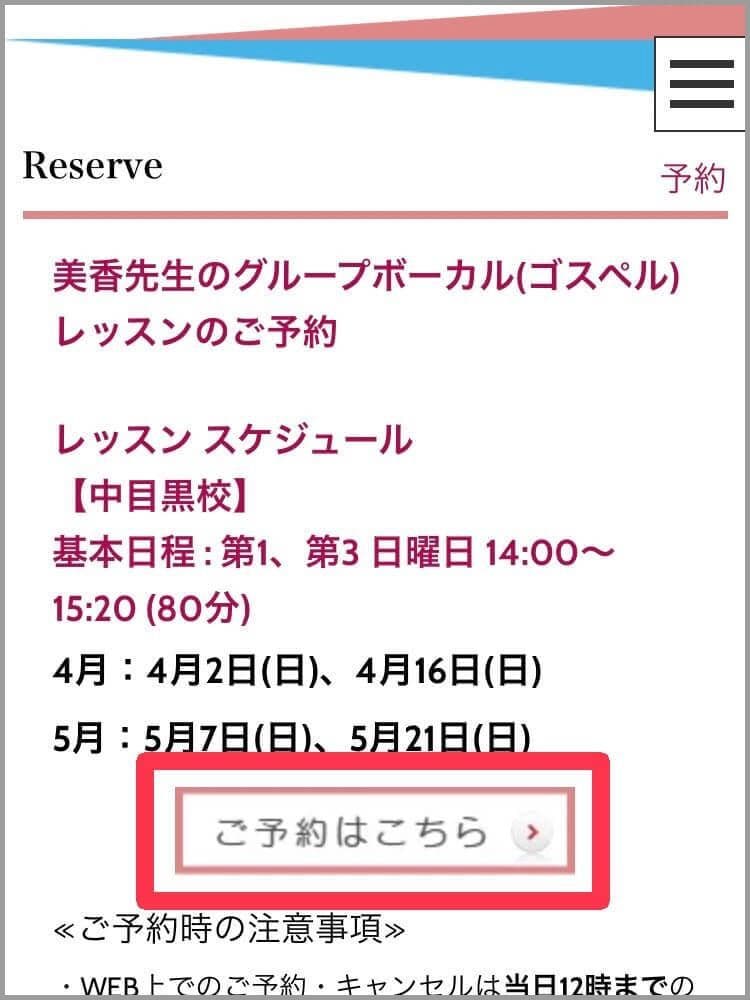 レッスン開始2時間前以降は、お電話にてお問い合わせください。