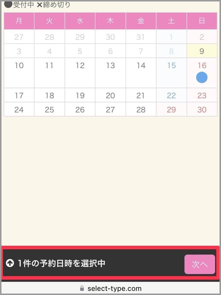 ※こちらの登録は予約システム「SelectType (セレクトタイプ)」に登録する形となります。